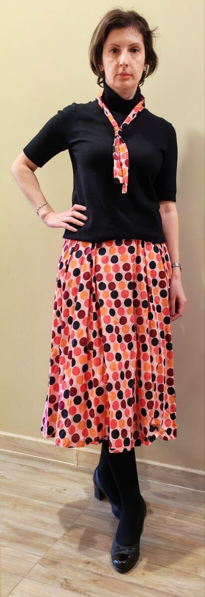 Было платье из O'stin. Кто бы мне тогда сказал: "Девушка!!! С вашей ж... такой низ противопоказан". Опять промолчали 🤣. В итоге висело... А лодочка и три четверти так манили... Доманились 😅. По-моему, очень даже ничего 😉.
