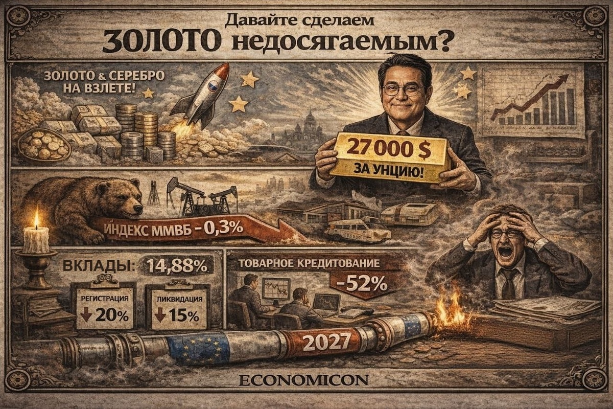 ? Сегодня драг металлы снова на взлете, золото, серебро покоряют новые вершины, разбудили даже деда Кийосаки, который в своей манере предсказал стоимость золота в 27 тысяч за тройскую унцию. Вместе с золотом растут и золотодобытчики, Селигдар прибавляет 7,5%, ЮГК растет на 6,7%, Полюс золото 1,7%. Индекс ММВБ немного приуныл, потеряв 0,3%, основными драйверами падения выступил нефтегазовый сектор, банковский сектор и металлурги, куда же без них. В 2025 году потребление огненной воды населением РФ сократилось, что не может не радовать. Снижение составило 9,3%. В 2025 году было продано: слабоалкогольных напитков — 1,53 млн дал (снижение почти в 8 раз г/г) водки — 73,3 млн дал (снижение 3,6% г/г) коньяка — 15 млн дал (снижение 9,2% г/г) ликероводочных изделий — 18,8 млн дал (рост 12,7% г/г) вина — 56 млн дал (снижение 1,9% г/г) ликерных вин — 1,15 млн дал (снижение 10,7% г/г) Всего спиртных напитков (крепостью выше 9 градусов) было продано 119,98 млн дал (снижение 1,1% г/г). Помимо сн
