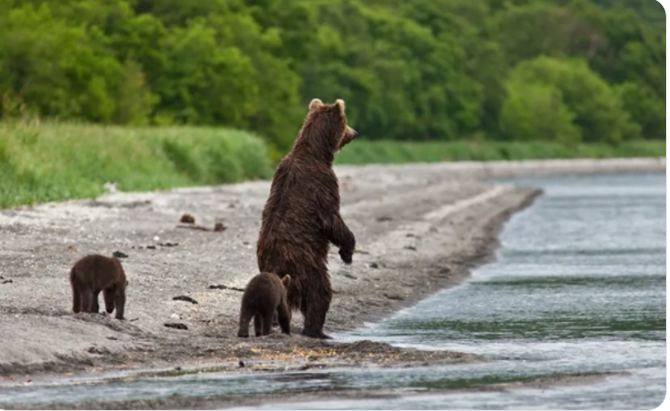 На поляне перед домиком стояла медвежья семья. Увидев его, медведица встала на задние лапы — древний медвежий жест приветствия.
