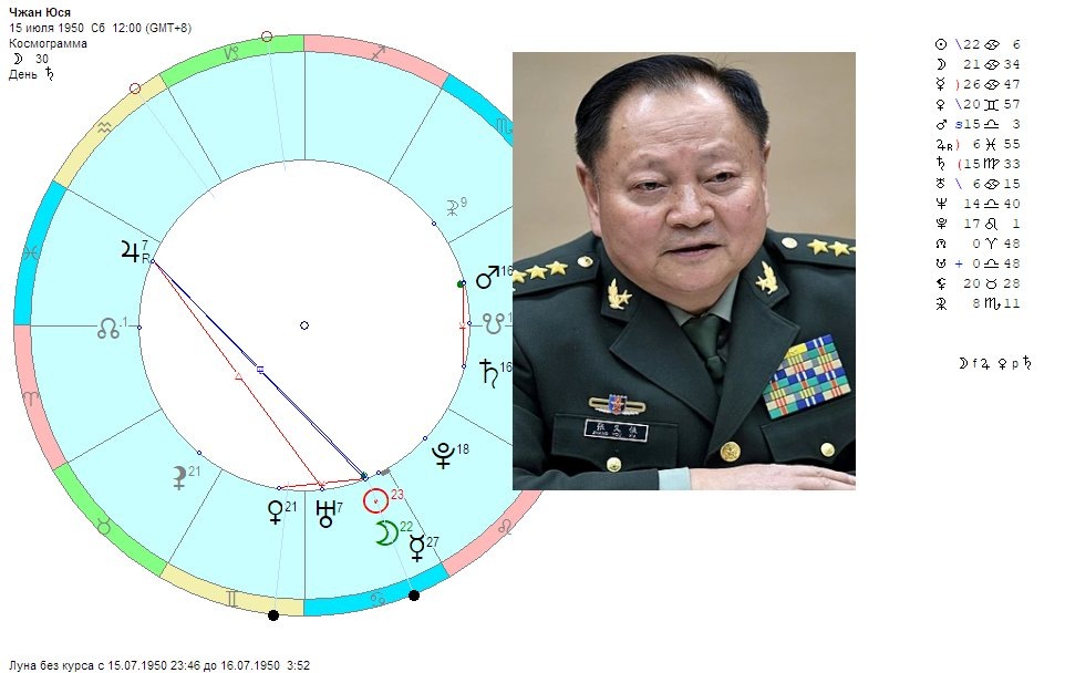 Отметим и карьерный путь. Чжан Юся был любимчиком Си Цзиньпина, который в своем восхождении на политическую вершину все время тащил его за собой. Потому что их "отцы воевали вместе" - сообщает Википедия. Они с детства дружны. Так что перед нами яркий случай непотизма (непотизм, от лат. nepotismus — это практика предоставления преимуществ родственникам и близким друзьям). Блат, как говорили в СССР. В гороскопах непотизм выражается ядром в знаке Рака или набором планет рядом с надиром (ИС).