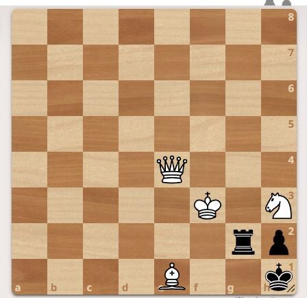Черной пешке один ход до ферзя. У белых ферзь, конь и слон. Автор задачи А. Степочкин, 1987 год. Подписывайтесь и ставьте лайк. Первый верный ход смотрите в галерее.