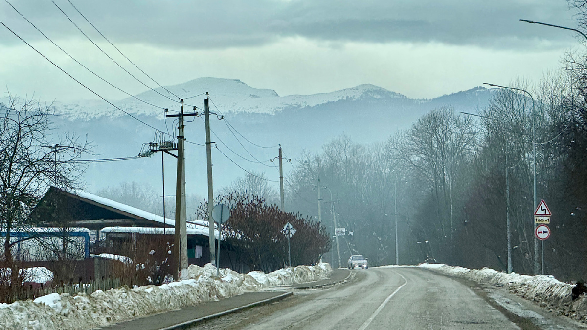 Дорога от Геленджика до Гуамки заняла 4 часа. Дождь преследовал нас большую часть пути, и надежда увидеть зимнюю сказку в Гуамском ущелье постепенно таяла. Но погода оказалась к нам добра: дождь стих, и перед нами во всей красе открылись зимние пейзажи.