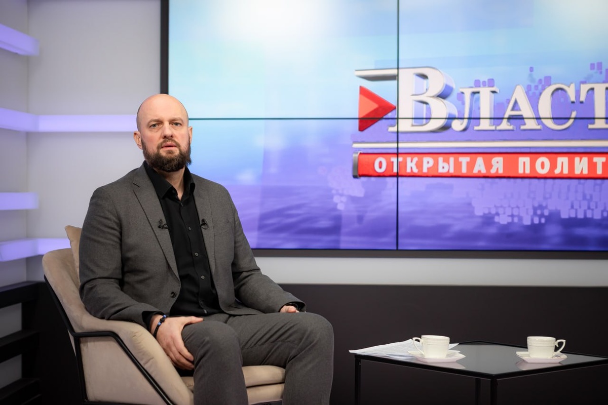 На телеканале «Сейм» началась программа «Власть. Открытая политика». Гость студии — глава Курска Евгений Маслов