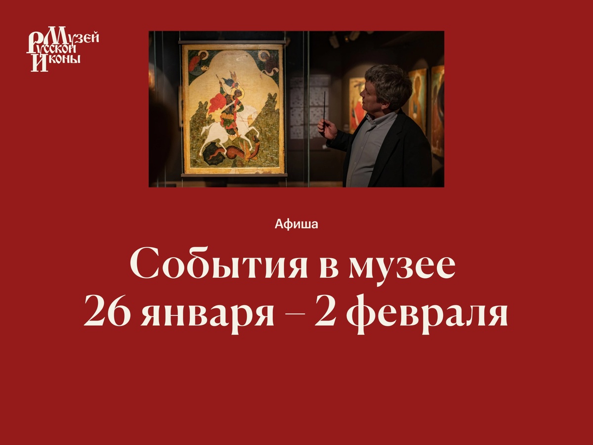 ❗С 19 января до 4 февраля включительно временно закрыт зал «Византийское и поствизантийское искусство» Рассказываем о мероприятиях в музее и ждем вас в гости! 🔸 С 4 декабря 2025 по 3 марта 2026 Расширенная экспозиция искусства XVII века «Памяти боярыни Феодосии Морозовой. К 350-летию мученической кончины. Иконы и книги XVII столетия». Вход свободный, по графику работы музея. Подробнее о проекте Экскурсии 27 января – 3 февраля Обзорные и тематические программы на любой вкус. 🔸 Посмотреть подробнее и записаться по ссылке. 29 января, четверг, 19:00 Онлайн-лекция «Искусство русских княжеств XII века». Лектор – А.Г. Барков. 🔸 Регистрация не требуется, трансляция по ссылке. Запись останется на канале. 30 января, пятница, 19:00 Онлайн-лекция «Успенский собор во Владимире». Лектор – Ю.В. Ратомская. 🔸 Регистрация не требуется, трансляция по ссылке. Запись останется на канале. 31 января, суббота, 19:00 Концерт «Чайковский. Размышления». В программе концерта прозвучат камерные