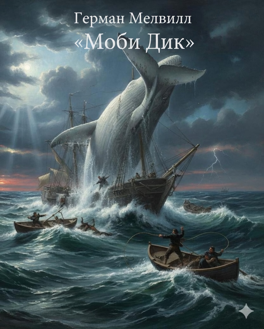 ВСЕ КНИГИ МИРА ЗА МИНУТУ Герман Мелвилл — «Моби Дик» Суть в одной фразе: Одержимая погоня капитана Ахава за гигантским белым китом, которая превращается в философское противостояние человека и Бога. Мир и герои: Китобойное судно «Пекод». Рассказчик Измаил, благоразумный Старбек и безумный капитан Ахав, потерявший ногу в схватке с китом. Сюжетный драйв: * Одержимость: Вместо добычи ворвани Ахав заставляет команду искать только одного зверя — Моби Дика, в котором он видит воплощение всего мирового зла. * Знамения: Путь судна полон дурных предзнаменований, но Ахав игнорирует мольбы команды повернуть назад, считая себя равным судьбе. * Битва: Трехдневная кровавая охота. Белый кит методично уничтожает лодки, проявляя почти сверхъестественный интеллект. * Финал: Моби Дик разбивает «Пекод» в щепки. Ахав погибает, запутавшись в лине собственного гарпуна. Все тонут, кроме Измаила, которого спасает пустой гроб, послуживший ему буем. В чем «фишка»: Это не просто приключения, а притча о том, как