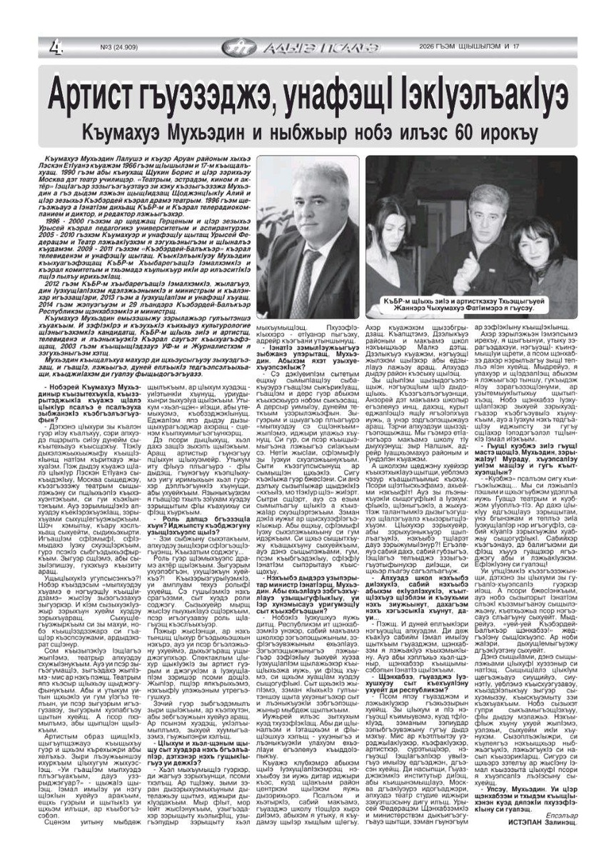 Статья к 60-летию со дня рождения Мухадина Кумахова