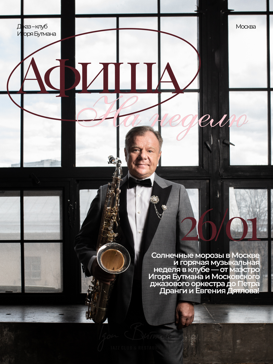 Наслаждаемся солнечными морозами в Москве и горячей музыкальной неделей в клубе — от маэстро Игоря Бутмана и Московского джазового оркестра до Петра Дранги и Евгения Дятлова! До встречи! 🔥