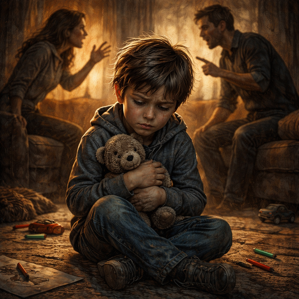 Иногда детство не заканчивается и не проходит - оно раскалывается, как стакан, в который слишком долго наливали кипяток и ледяную воду по очереди. Снаружи всё может выглядеть вполне благопристойно: обычная семья, работа, школа, праздники. А внутри, в нервной системе ребёнка, годами идёт настоящая война, потому что мама и папа давно перестали быть берегами, между которыми течёт жизнь, и превратились в две противоборствующие стороны, постоянно проверяющие друг друга на прочность.
