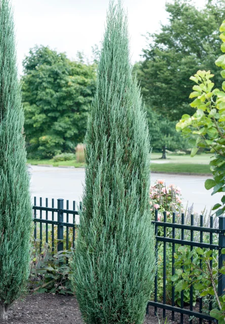 Жесткие, вертикально растущие, плотно прижатые к стволу побеги, прирастают примерно 15 см в год. В 10-летнем возрасте растение достигает 2-3 м в высоту и 0,5-0,7 м в диаметре. Дополнительным плюсом «Blue Arrow» является то, что нижние ветви растут почти от самого основания ствола и очень долгое время сохраняются. Эта особенность дает неограниченные возможности в универсальном использовании сорта. Очень ценный сорт для создания небольших и масштабных ландшафтных композиций из хвойных и лиственных деревьев и кустарников с различной архитектурой и контрастной окраской листвы. Прекрасно смотрится как солитер или в составе небольших односортных групп в вересковых садах и альпинариях, а также в свободно растущих миксбордерах. Способен создать прекрасную живую изгородь, которая не требует стрижки и занимает очень мало места. Декоративно выглядит осенью, когда ее листва окрашивается в золотистый цвет.