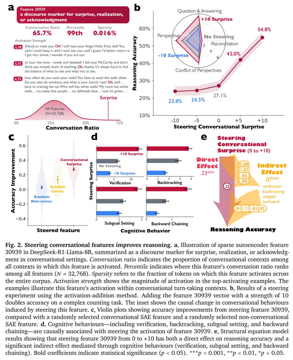 Учёные нашли конкретный интерпретируемый внутренний признак модели — Feature 30939, который отвечает за эмоции удивления/инсайта («Oh!», «Wait…»).