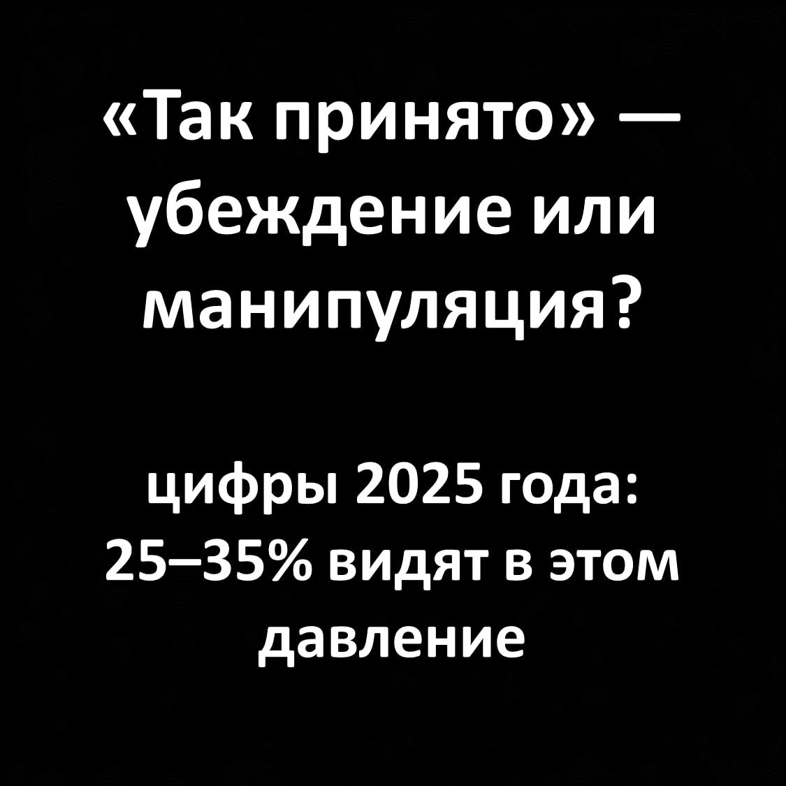 Типичные фразы: «Все клиенты берут эту опцию», «Так принято в нашей отрасли», «Большинство команд уже перешли». 📍Так звучит стратегия №6 из таксономии Muir и коллег (2025). И здесь скрывается один из самых коварных сюрпризов. Чалдини называл это социальное доказательство. Это когда мы смотрим на других, чтобы понять, что делать. Но исследование 2025 года показало социальные нормы — это самая скрытая стратегия влияния. В 55–65% случаев человек не замечает, что на него давят. Он просто думает: «Ну, если все так делают, значит, так правильно». Цифры восприятия: ➡️ Честное убеждение — 55–65% ➡️ Манипуляция — 25–35% ➡️ Принуждение — 5–15% ➡️ Вред — средний: 3–4 из 10 ➡️ Скрытность — самая высокая после симпатии: 55–65% ➡️ Реактивность добавляет негатива +20–25% (особенно если норма навязана) 📍Почему это так работает? Скорее всего потому, что мы социальные животные. Когда норма реальная и близкая — мы подстраиваемся автоматически. Но если норма фальшивая или чужая — человек чувствует