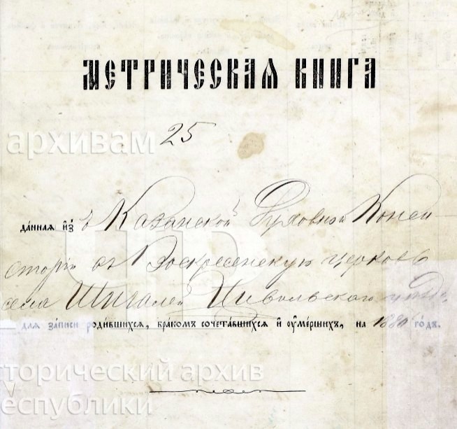 Село Шигали Воскресенские. Метрическая книга о родившихся за 1863-1880 гг. 1 января 1863 — 31 декабря 1880 ГИА Чувашской Республики (ГИА ЧР), фонд № 557, опись № 7, дело № 279, стр. 837 скан. Метрическая книга, данная из Казанской Духовной Консистории в Воскресенскую церковь села Шигалей Цивильского уезда для записи родившихся, браком сочетавшихся и умерших на 1880 год. Часть первая. О родившихся. Стр. 881 скан. Ноябрь. № 126. 3 числа родилась. 16 числа крещена. Екатерина. Родители: Деревни Яшкильдиной Шоркасов из чуваш крестьянин Яков Кузьмин и законная его жена Матрона Сергеева, оба православные. Восприемники: Села Шихазанова отставного матроса Ивана Савельева дочь Елена. Таинство крещения совершил: Священник Симион Воинов. Псаломщик Евлампий Альфонсов. https://yandex.ru/archive/catalog/20880962-3946-4655-a564-9eb4d667a0d4/881