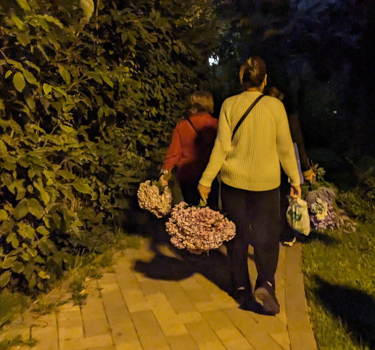 Таджички покидают парк Горького с букетами гортензий. Прошлым летом в растительном оформлении Москвы был сильный перекос в сторону гортензий. Столица просто утопала в этих цветах. Видать, кто-то в правительстве города обзавёлся гортензиевой плантацией. Впрочем, граждане активно прореживали клумбы. Вероятно, пытаясь спасти остальных от гортензиевого передоза