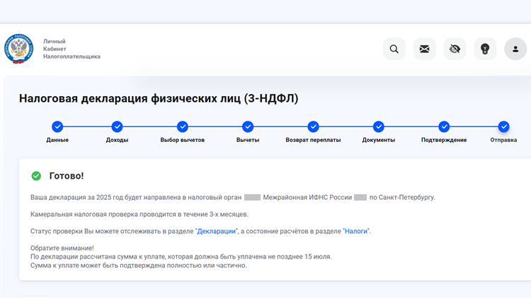 Всем привет! Подала вчера налоговую декларацию 3-НДФЛ, чтобы получить налоговый вычет за инвестиции, лечение и благотворительность. Постаралась собрать все документы пораньше, так как, по опыту, если подать декларацию в начале года пока все "раскачиваются", то деньги на счет придут гораздо быстрее) Опыт такой был, но пока маленький срок наблюдения и статистика не точная)) Подать налоговую декларацию 3-НДФЛ можно разными способами, но лично я оформляла налоговый вычет через личный кабинет налогоплательщика - он очень удобный на мой взгляд. Какие суммы я подала в этом году - осталяю их здесь для себя 🙃 Итого я рассчитываю вернуть с общей заявленной суммы (597 041 руб.) налоги в сумме 77 615 руб. по ставке 13%. Но есть нюанс 🤔 Почему-то программа насчитала мне 240 719 руб.!? 😲 Я даже вернулась на несколько шагов назад и проверила все суммы, но они были указаны верно, поэтому я отправила как есть. Тем более, я приложила сканы всех подтверждающих документов, так что... Кстати, вот здесь