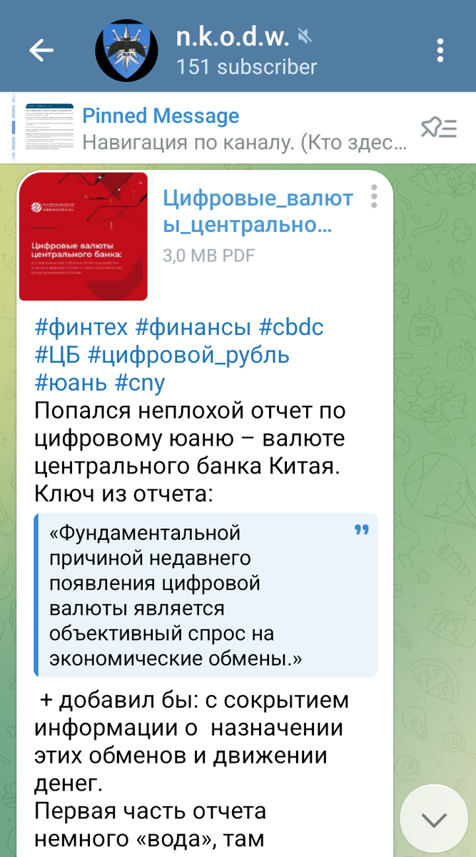 "Попался неплохой отчет по цифровому юаню – валюте Центрального банка Китая. Ключ из отчета: