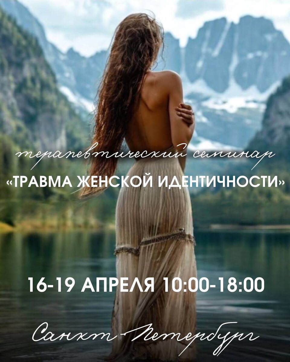 🌺 «Травма Женской Идентичности» в Санкт-Петербурге. 16-19 апреля 2026 г. 4 дня, очно с 10:00 до 18:00 Нарушенная женская идентичность — это тяжелое проживание женщиной своей женственности. Это невозможность достижения простого женского счастья. Это трудность в прохождении женских задач — хорошие, взаимные отношения, любовь, семья, беременность, рождение и воспитание ребенка. На семинаре мы исследуем: — роли женщины — навязанные и природообразные, сакральные смыслы — уровень личной, родовой, национальной истории — сценарии, послания, судьбы транслируемые и передающиеся по женской линии — источники травм женской идентичности — пути исцеления женской идентичности и природы Методы, применяемые на семинаре: телесная и арт-терапия, полевая терапия. Стоимость: 23500 р. по предварительной оплате, в день начала семинара — 25500 р. Ведущая семинара: Сергунова Наталья Васильевна — психолог, психосоматотерапевт, телесный терапевт, полевой терапевт, арт-терапевт, фото-терапевт, ведущая трансф