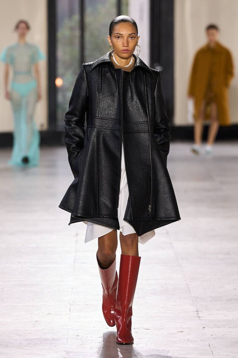 Коллекция про тихую уверенность и взрослую элегантность. Guillaume Henry делает ставку не на эффект, а на ощущение: вещи выглядят собранно, спокойно и «на годы вперёд». В центре — мягкие, но чёткие силуэты: платья, кейпы, удлинённые линии, деликатно подчеркнутая талия. Ткани балансируют между структурой и текучестью — комфорт без потери статуса. Casual и деним приземляют эстетику, делая Patou ближе к реальной жизни. Исторические отсылки работают фоном — без театра и костюмности.