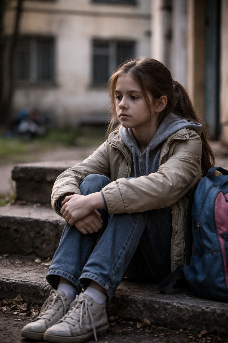 Она стояла у подъезда и привычно смотрела по сторонам, проверяя, можно ли идти. Это было не трусостью. Это было… осторожностью. Как у кошки, которая сначала нюхает воздух.