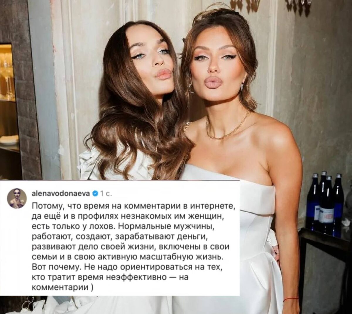 В разговоре с известным альпинистом Алексом Абрамовым модель призналась, что критиковали и высмеивали её в комментариях преимущественно мужчины - многие не верили, что Виктория сама взошла на гору. «Но мужики, сидя на диване дома, может, они были в горах, но это не те люди, которые были на восьмитысячниках. Когда ты был на восьмитысячнике, ты понимаешь, какой это труд. Тебя не может затащить ни один шерпа. Вот почему такое отношение ко мне именно от мужчин?» - рассуждает Боня. Неожиданно Боню поддержала другая экс-участница «Дома-2» Алёна Водонаева, с которой они помирились несколько лет назад. По мнению журналистки, комментарии незнакомым женщинам оставляют только неудачники, в то время как нормальные мужчины тратят это время на работу и семью. Согласны? Блокнот Старс в MAX