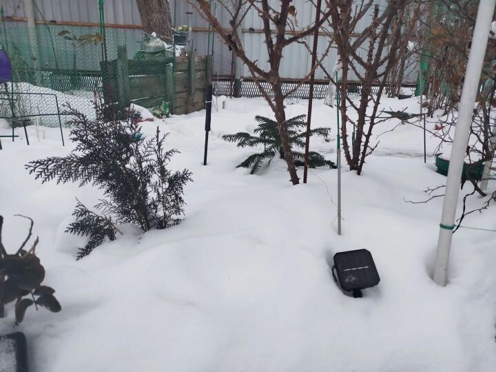 Поиграть в снежки и слепить снеговика – огромная радость для детей. Снег для этого должен быть тяжелым, плотным и с большим содержанием воды. А вот для растений на участке он будет губительным, основной ущерб связан именно с его весом. Например, ветви колоновидных хвойных (например, можжевельника) могут не выдержать тяжесть мокрого снега. Поэтому перед началом зимы желательно связать их или стряхивать после снегопада, такую процедуру проводят и для молодых хвойных. От такого тяжелого снега могут пострадать и кустарники (под его тяжестью сгибаются и часто ломаются ветви). Еще одна опасность – снежные скопления на крышах, навесах. С них в любой момент может произойти сход снега на растения, поэтому по возможности его надо убирать. И растения лучше сажайте на расстоянии не менее 1,5 м от построек.