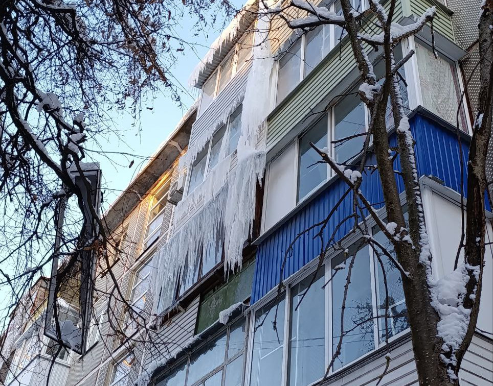 Пятиэтажка на проспекте Ленина заросла сосульками