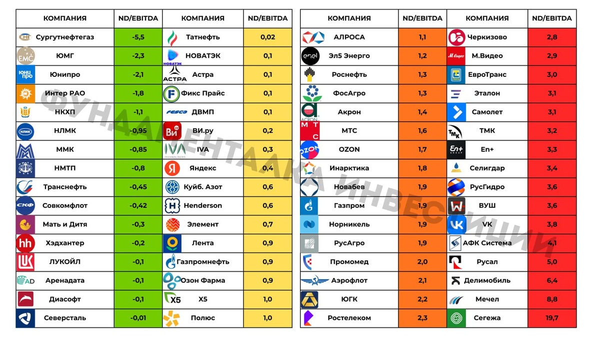 ! ⚖️ В качестве знакомства делюсь с Вами очень полезной таблицей "долговых нагрузок" ключевых компаний российского фондового рынка. СМОТРЕТЬ КАРТИНКУ👆Про её значение более подробно можно прочитать - тут. ⛽️ Также Вашему вниманию представляю главную инвестиционную идею 2026 года в привилегированных акциях Сургутнефтегаза. Подробнее читайте - тут. 📄 А для тех, кто любит инвестировать в рынок облигаций я подготовил список из 10 облигаций с высокой доходностью. Подробнее - тут. В канале Фундаменталка вы также можете найти: — обзоры компаний. — инвестиционные идеи. — полезную информацию о фондовом рынке. ✅ С уважением, Фундаменталка Инвестиции. Подписывайтесь, всех буду рад видеть на канале. https://t.me/fund_ka