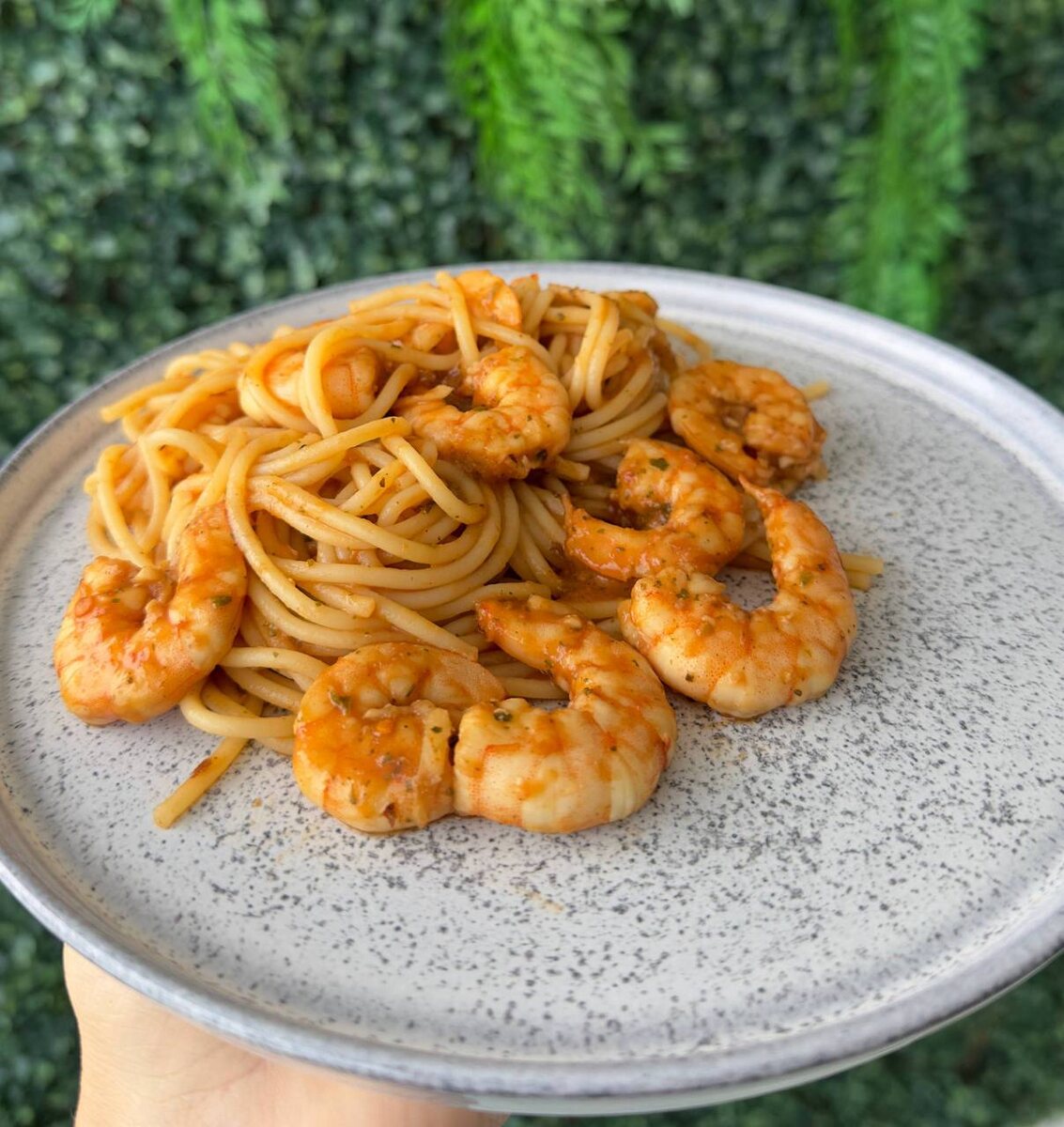 😋 Паста с креветками в томатном соусе и салат🥗 #обед #идея_обеда