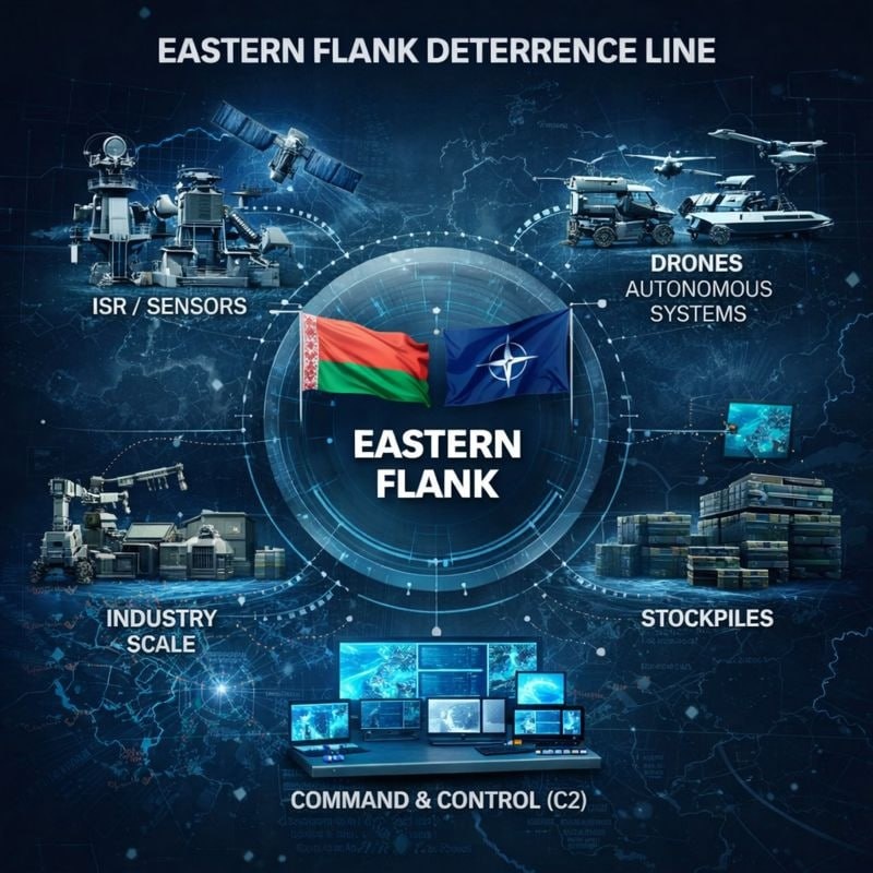 НАТО переходит к практической проработке концепции так называемой линии сдерживания восточного фланга — Eastern Flank Deterrence Line (EFDL). Это попытка системно перестроить оборону вдоль границы с Россией и Беларусью, сократив время реакции и выиграв первые сутки возможного конфликта. 🧱 По сути, EFDL — это многоуровневая оборонная среда, где ключевая ставка делается на раннее обнаружение, автоматизацию первых фаз боя и задержку наступающей стороны до подхода основных сил НАТО. 🔭 Ключевая основа EFDL — это разведка и контроль обстановки. Вдоль восточной границы НАТО планируется плотная интеграция наземных, воздушных, космических и киберсредств разведки: РЛС, оптические и электронные системы, БПЛА, спутники, средства РЭР. Вся информация сводится в единую систему управления и обрабатывается в режиме, близком к реальному времени. 🗺 На базе этих данных формируется зона ограниченного доступа — глубоко эшелонированное пространство, где постоянное присутствие личного состава минимально