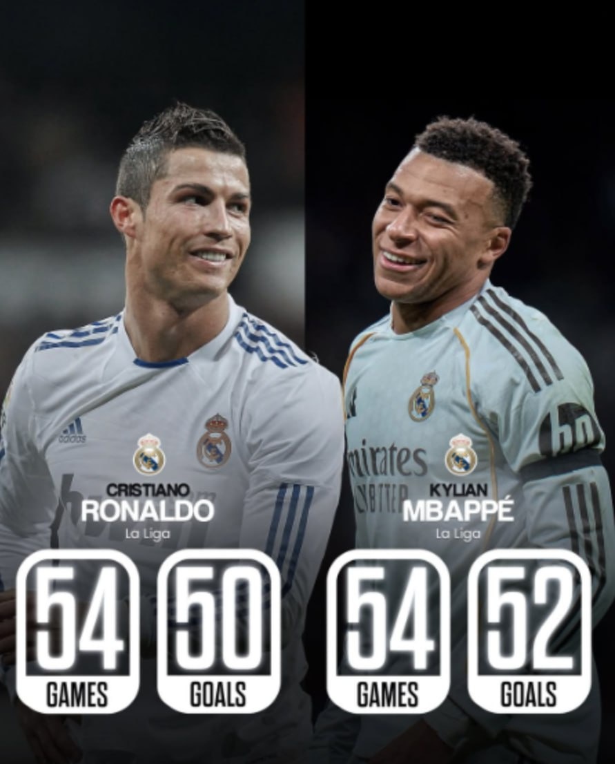 🇫🇷 Мбаппе забил больше голов за первые 54 матча в LALIGA, чем Криштиану