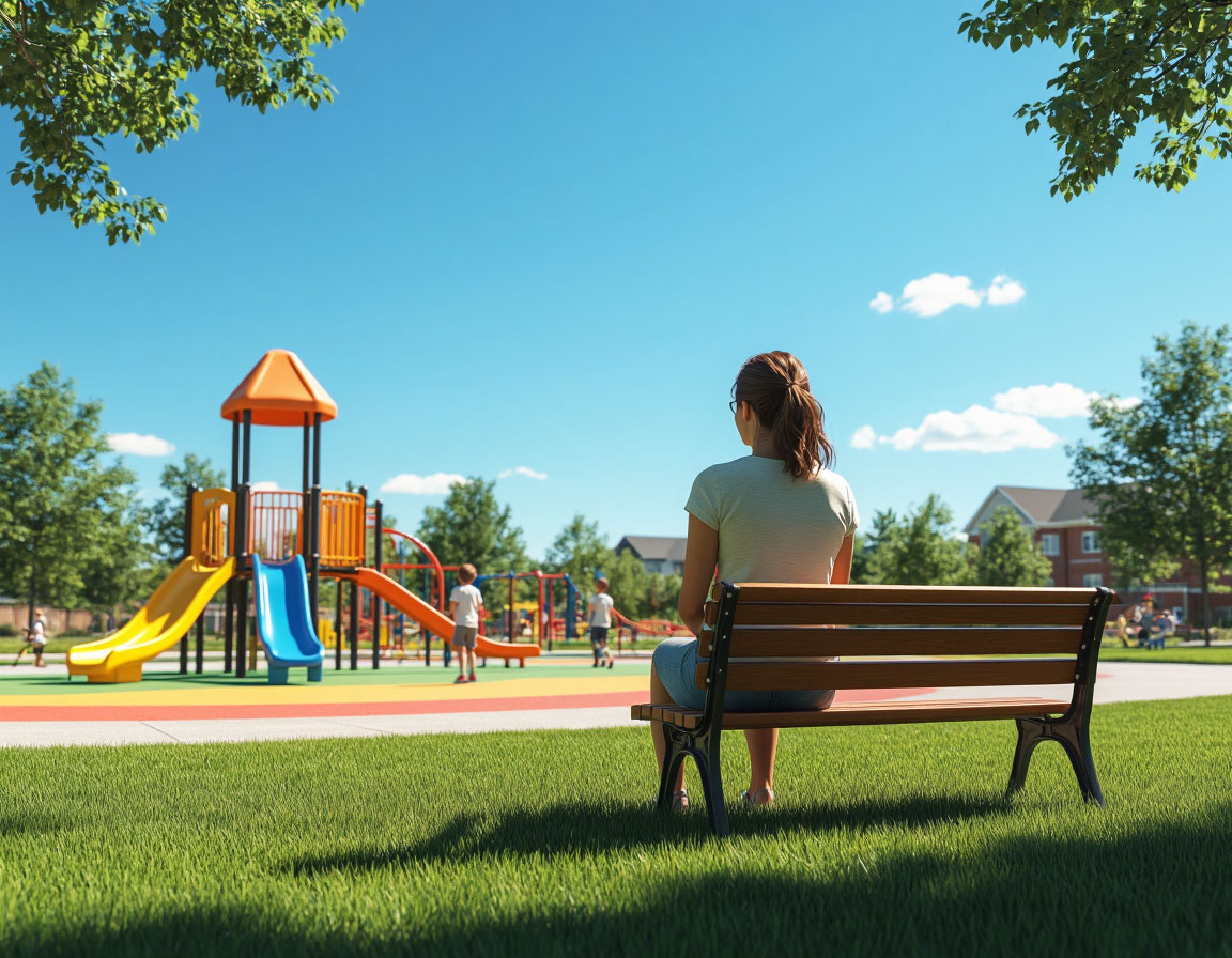 В тени больших, раскидистых деревьев стояли аккуратные скамейки. На них расположились матери. Они оживлённо разговаривали между собой, их голоса сливались в приятный, успокаивающий гул. При этом каждая женщина то и дело бросала внимательный взгляд на своего ребёнка – проверяла, всё ли в порядке, не случилось ли чего.