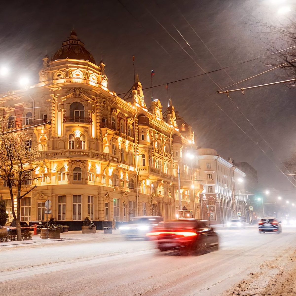 Снег мягко укутал улицы, огни фонарей отражаются в тишине, и город будто замедлил шаг. В такие моменты Ростов особенно красив — спокойный, тёплый по-своему и очень настоящий. Хочется просто идти, смотреть по сторонам и запоминать этот зимний вечер ❄️✨ ▶️
