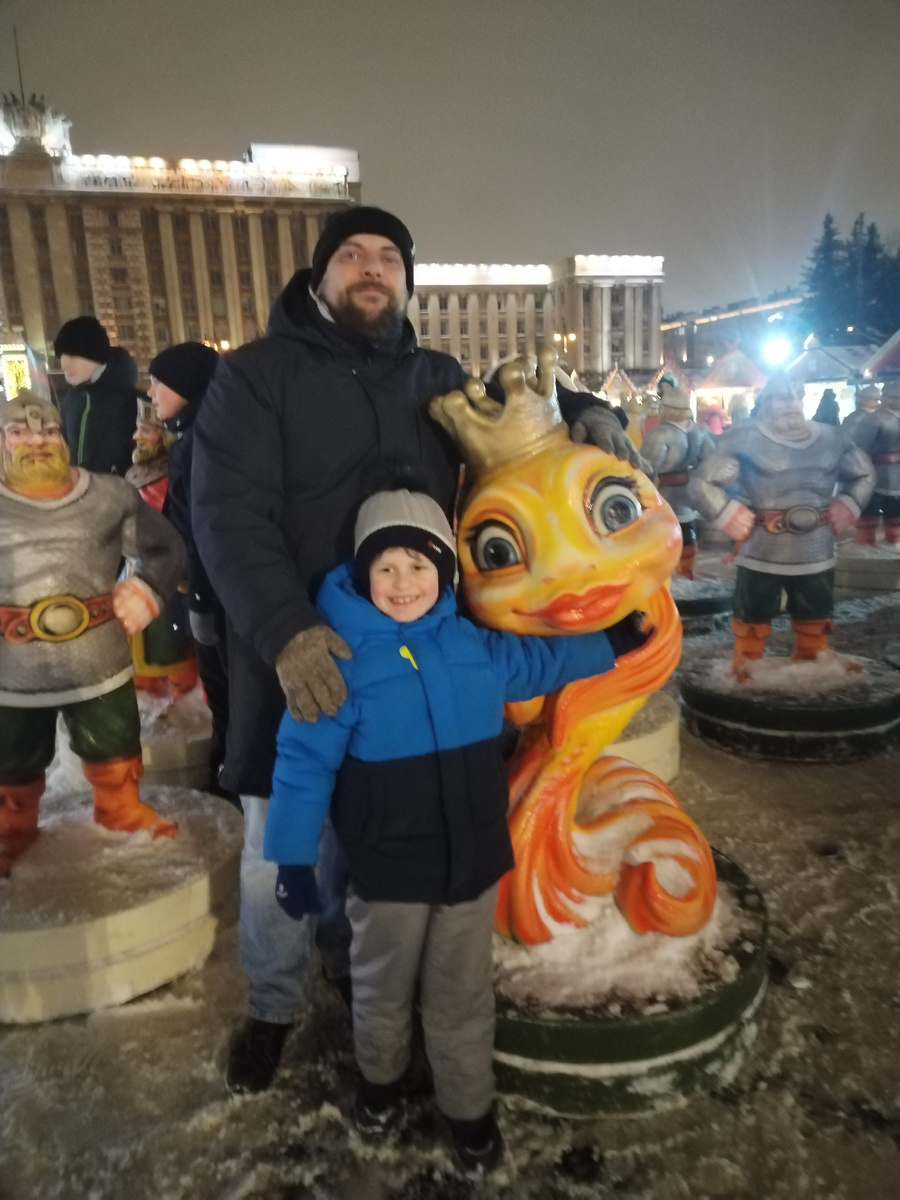 Работа-работа, перейди на бегемота... Времени на все не хватает, тут новые события подходят, а я еще про новогодний город не успела все рассказать. Так что ускоряюсь, объединяю в одну статью две поездки. Тем более, что вторая поездка была очень быстрой. В один из дней мы решили выбраться на Московскую площадь (станция метро Московская, там, где памятник Ленину и фонтаны). Прочитали, что там основная тема - сказки Пушкина, и захотелось посмотреть самим. Отзывы о ярмарке в сети самые разные. Кому-то все нравилось, а кто-то ругался, что на досмотре заставляли выливать все свои напитки, даже те, что для детей. Расскажу, как приехали мы. Я думаю, по фотографиям вы заметили, что я беру с собой маленькую сумочку через плечо. Она достаточно вместительная, при этом как раз на досмотрах очень удобно, что не надо показывать массу барахла. С ней я была на концерте "РадиоТапка", с ней ходила в цирк, с ней и по ярмаркам гуляю. На досмотре я просто сняла сумочку, прошла через рамки, и... у меня не пр