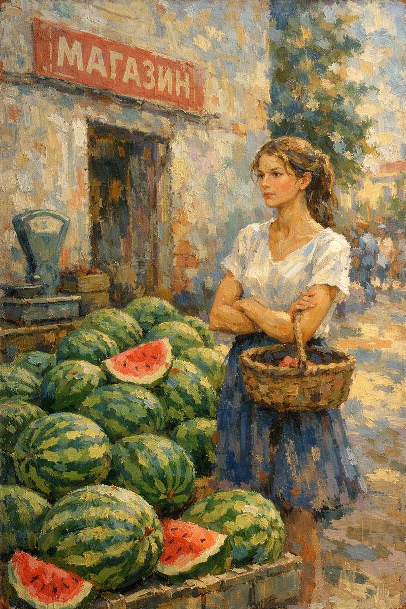 Когда мне было лет 12–13, я катался на скейте. Мы с друзьями приходили к продуктовому магазину, катались там, прыгали с парапета и просто дурачились. Тем летом там появилась «девушка с арбузами». Она в этом году закончила 11 класс и решила подзаработать, продавая арбузы. Мы стали к ней подъезжать, разговаривать. Иногда помогали ей разгружать арбузы — за это она давала нам самый спелый. Она как-то тепло ко мне относилась, спрашивала про мою жизнь, и вообще мы подружились несмотря на то, что я был значительно младше её. У меня тогда не было близких, с кем я могу бы поговорить о чем угодно. Взрослые были отстранёнными, делая вид, что у нас всё «как у всех». Но у меня не было как у всех. Внутри была огромная дыра, и я уже начинал делать плохие вещи, растить в себе какое-то безразличное чудовище. Это чудовище было жестоким и сильным, не чувствовало страха и боли, но оно могло меня защитить. Девушка с арбузами… Я не могу вспомнить, как её звали. Возможно, Лена. Она жила на пятом этаже в сосе