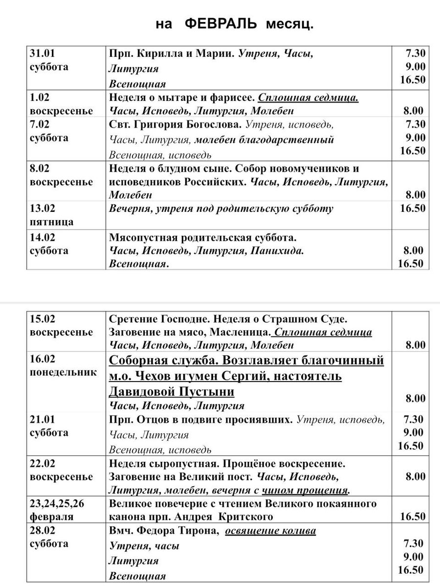 #расписание богослужений на 📝 ФЕВРАЛЬ 2026 ХРАМ ОТКРЫТ С 9.30 до 16.00