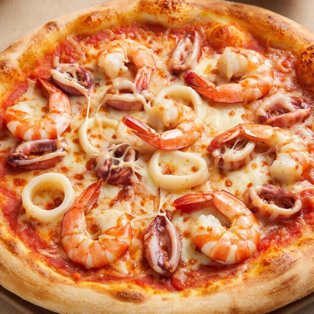 Всем привет! Приготовим вкусную пиццу с морепродуктами. Ингредиенты: * Тесто для пиццы (готовое или приготовленное самостоятельно) * Оливковое масло для смазывания теста * Соус маринара или томатный соус (около 1 стакана) * Морепродукты смесь (кальмары, креветки, мидии, осьминожки — около 200 г) * Сыр моцарелла (тертый, примерно 200 г) * Свежий базилик (несколько листочков для украшения) * Чеснок (1 зубчик, измельченный) * Лимонный сок (сок половины лимона) * Соль и черный перец по вкусу * Дополнительные специи по желанию (орегано, розмарин) Приготовление: 1. Подготовка морепродуктов: Промойте морепродукты холодной водой и обсушите бумажным полотенцем. Обжарьте слегка на оливковом масле вместе с чесноком до готовности (примерно 2-3 минуты). Добавьте лимонный сок и перемешайте. 2. Подготавливаем тесто: Раскатываем тесто до нужной толщины и формы. Смазываем поверхность тонким слоем оливкового масла. 3. Наносим соус: Равномерно распределяем соус маринара или томатный соус по всей поверх
