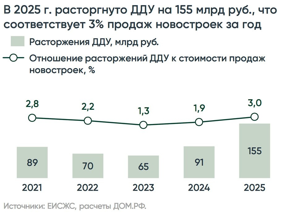 🪖 Расторжения ДДУ в новостройках достигли максимума за 5 лет — ДОМ.РФ