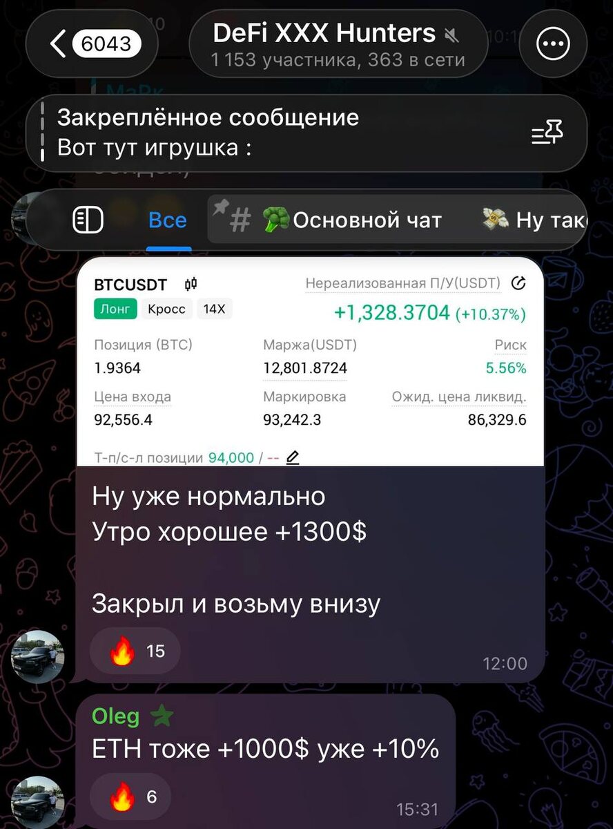 BTC: +1300$ — спокойно закрыли. ETH: +1000$ — без суеты, по плану. Никакого шоу и криков «туземуна». Просто работа по логике рынка. В Чате Хантеров: — разбирают входы и выходы — делятся мышлением, а не эмоциями — фиксируют результат и ждут следующую точку 💬 Это не история про «всегда в плюс». Это история про систему, дисциплину и холодную голову. Сейчас ВХОД В ЧАТ ХАНТЕРОВ СО СКИДКОЙ — хороший момент присоединиться и посмотреть, как это выглядит на практике, а не в теории. 👉 ССЫЛКА НА ВСТУПЛЕНИЕ