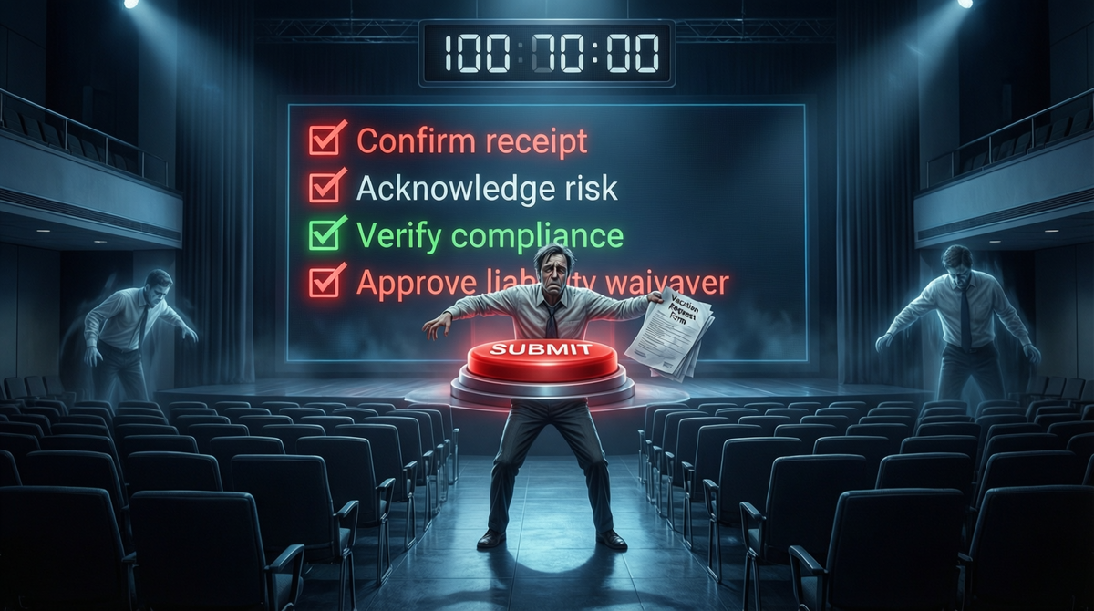 — Начальник шлёт допсоглашение к договору в 23:59. Ты спишь. В 00:01 он увольняет тебя за «неисполнение условий». А ты даже не знал, что условия изменились.
