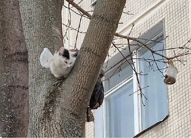 Дерево у дома на улице Подвойского в Санкт-Петербурге стояло ничем не примечательное — обычная берёза с искривлённым стволом и редкими ветками. Прохожие шли мимо, не поднимая глаз. Машины проезжали, не замедляясь. Весна только-только начинала робко отвоёвывать права у зимы, и холодный ветер всё ещё кусал за щёки. Но если бы кто-то остановился, присмотрелся внимательнее, то заметил бы на верхних ветках нечто странное. Комок шерсти, обмотанный полиэтиленом, застывший в неподвижности. Только изредка этот комок вздрагивал и издавал тихое, почти беззвучное мяуканье — настолько слабое, что его можно было принять за скрип веток.
