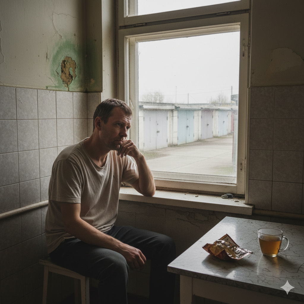 «Сорок два года, а живу как студент», — подумал он, глядя в окно на серый двор с покосившимися гаражами. Работа охранником на складе приносила копейки, но после того как три года назад его сократили с завода, он был рад и этому. Жена ушла еще раньше — сказала, что устала от его вечного нытья и водки по вечерам. Забрала дочку, теперь виделись раз в месяц, и то через силу.