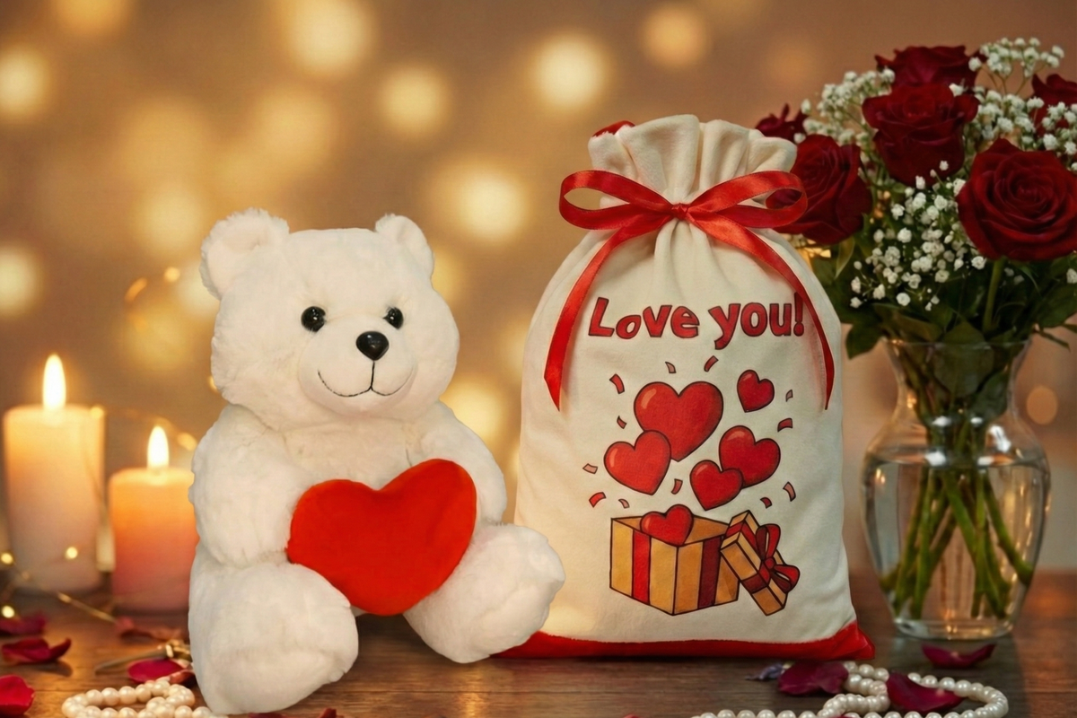 Каждый год одна и та же головная боль: подаришь просто цветы — «банально». Подаришь очередную кружку с сердечком — «у меня их уже десять». Подаришь косметику — «не угадал с брендом». В этом году мы нашли формулу, которая работает безотказно. Это сочетание тактильности, интриги и романтики. Делимся готовым сценарием, как собрать подарок, который вызовет искреннее «Вау!». Мы привыкли прятать всё в упаковку, но тут пойдем от обратного. Пусть самый мягкий Мишка станет центром композиции. Он не просто игрушка в коробке. Мишка сидит и держит в лапах сердце — главный символ праздника. Это мгновенный «мимими» эффект с первого взгляда. Мишка как бы говорит: «Я дарю тебе свою любовь». Он задает настроение, а главная интрига ждет её рядом. Прямо рядом с мишкой-романтиком ставим подарочный мешок с надписью «Love you!». Почему именно он? Чтобы мешочек был приятным на ощупь, наполняем его хитами этого сезона: ✨ Лосьон для тела с шиммером (Вместо обычного крема). Это чистое девичье удовольствие. Увла