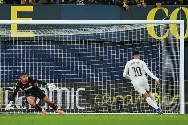 В субботу, 24 января, Мбаппе оформил дубль за «Реал» (Мадрид), в матче против «Вильярреала». Причём второй гол был забит с пенальти паненкой.