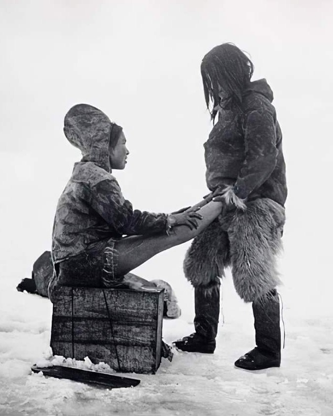 Гренландия принадлежит им. Мужчина-инуит греет ноги своей жены посреди крупнейшего на Земле острова из снега и льда. Просто такая сильная любовь. P.S. Американский исследователь Арктики Роберт Эдвин Пири сделал это фото в конце XIX века во время своей первой экспедиции в Гренландию. Подписаться на канал: 📱 Telegram / 💜 MAX / все наши каналы