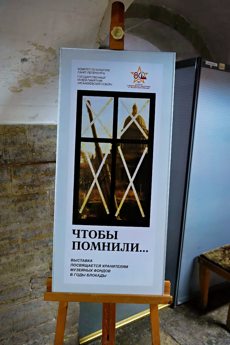 Экскурсия при содействии Муниципального образования "Владимирский округ" Мемориальная экспозиция "Чтобы помнили..." в подвале Исаакиевского собора рассказывает о героизме музейных работников Ленинграда в годы Великой Отечественной войны. Она открыта в 2004 году к 60-летию снятия блокады и до сих пор напоминает о спасении культурных сокровищ в нечеловеческих условиях. 1941 год стал испытанием не только для армии и мирного населения — под угрозой оказалось само культурное наследие страны. Фашисты целенаправленно уничтожали памятники, грабили музеи, вывозили произведения искусства. Перед музейными работниками встала беспрецедентная задача: спасти коллекции любой ценой. Ленинград, оказавшийся в блокаде, был особенно уязвимым. Город-музей с богатейшими собраниями — Эрмитаж, Русский музей, дворцы пригородов — мог потерять всё. С июля 1941 года по решению Ленгорсовета в соборе создали Объединенное хозяйство музеев (ОХМ) для хранения экспонатов, не успевших эвакуировать из Ленинграда и пригоро
