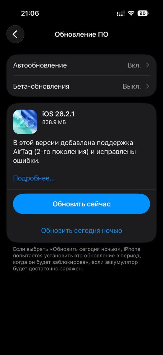 ⚡️Apple выпускает iOS 26.2.1 для iPhone