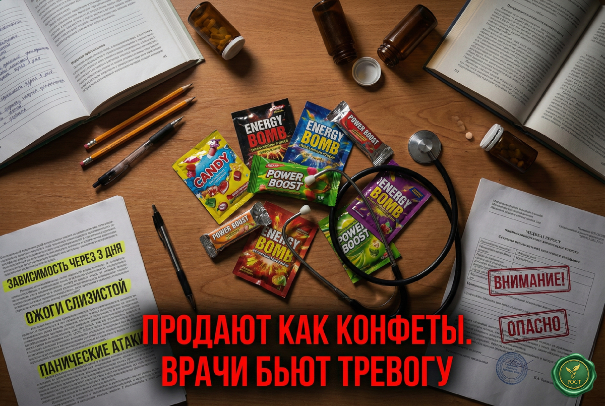 В январе 2026 года врачи Архангельской области забили тревогу: среди подростков стремительно распространяется новая мода — употребление «сухих энергетиков». Эти яркие пакетики и баночки с прессованным порошком внешне напоминают конфеты или жевательную резинку, продаются в обычных магазинах без возрастных ограничений — и отправляют детей в реанимацию. Сухие энергетики — это концентрированная смесь кофеина, таурина, витаминов группы B и органических кислот в форме порошка. Подростки рассасывают их во рту или растворяют в воде. Одна порция содержит столько же кофеина, сколько 3-4 чашки крепкого кофе. В соцсетях дети делятся восторженными отзывами: «Голова открылась, мысли стали быстрыми. Работает сильнее любого энергетика». Школьники принимают «бомбы» перед контрольными, экзаменами, когда не выспались или нужно доделать уроки ночью. Медики фиксируют серьёзные последствия даже после первого применения: Острые реакции: — Панические атаки и тревожность — Резкий скачок давления (даже у здоро