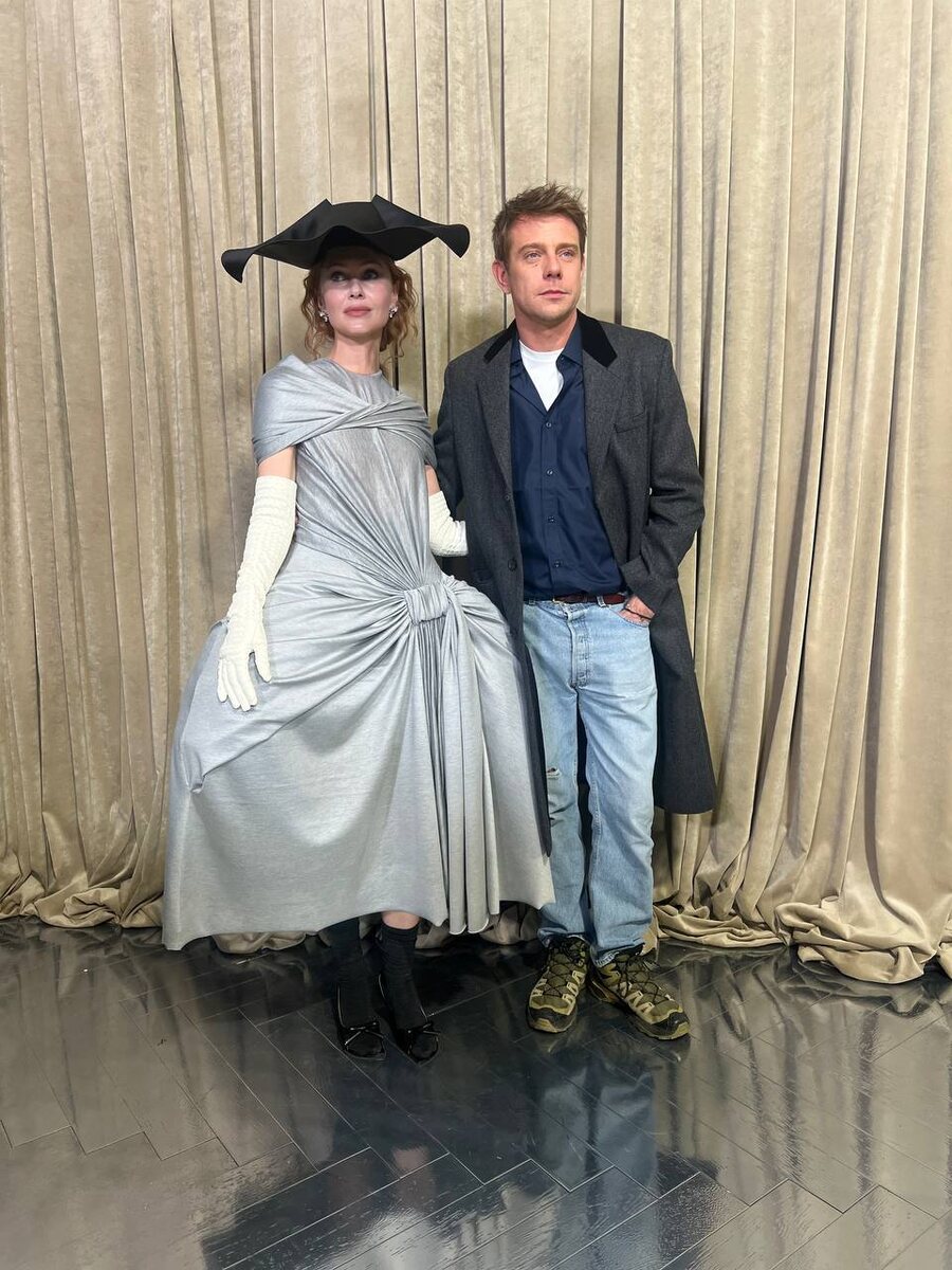 Ольга Карпуть полностью одета в вещи Dior, а рядом с ней стоит креативный директор Dior Джонатан Андерсон.
