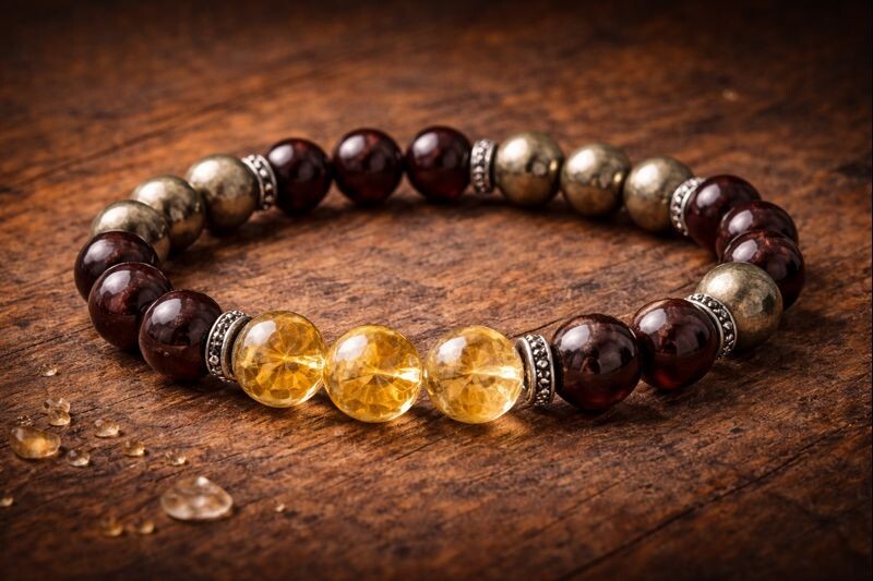 Этот браслет не убирает огонь Овна. Он добавляет к взрыву первого дня стабильный поток на все остальные дни. Гранат даёт энергию. Цитрин держит направление. Пирит превращает энергию в результат.