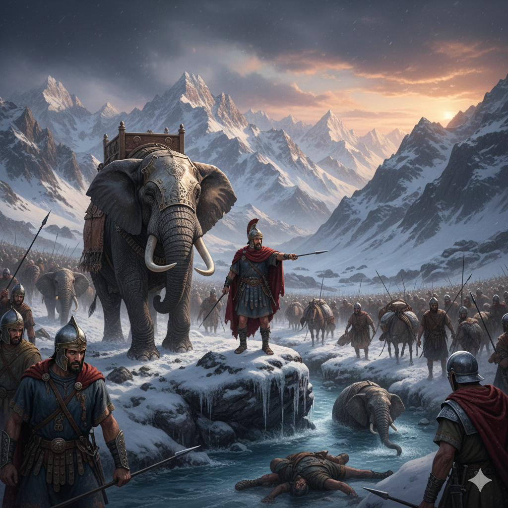 218 год до н. э. Армия из 90 000 человек, 12 000 всадников и 37 боевых слонов стоит у подножия Альп. Впереди — неприступные пики, обрывы и вечный холод. Римляне уверены: природа — их лучший союзник, и никто в здравом уме не потащит «древние танки» (слонов) через облака.