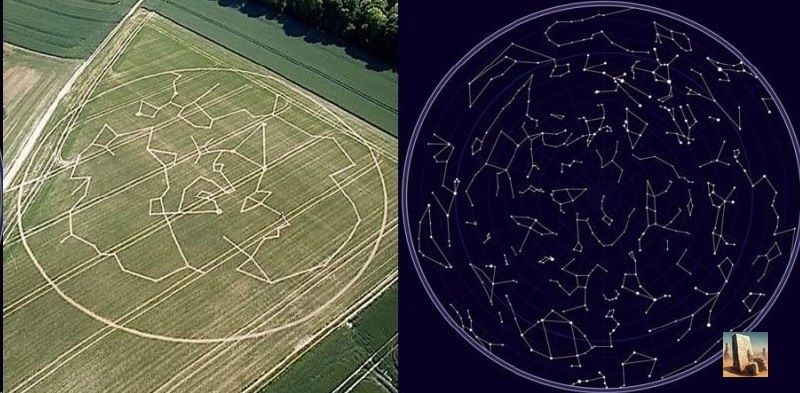В 2020 году во Франции, недалеко от города Амьен, появился рисунок на поле, который очень напоминает карту звездного неба с созвездиями, правда с одним отличием — точка с которой тот кто зарисовал свое звездное небо находилась не на Земле. Пиктограмма, которая проявилась на поле пшеницы, имеет диаметр около 200 метров. Рисунок действительно напоминает карту неба с созвездиями. В этом рисунке присутствуют созвездия большой и малой Медведицы, они выделяются в центре пиктограммы. Есть там и полярная звезда в центре карты, но нет многих созвездий видимых для наблюдателя с Земли. Остается лишь понять, с какой планеты можно наблюдать созвездия именно так, как нарисовано на этой карте. Может быть это Венера? Терра инкогнита | Неизвестная земля